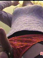 It's a beautiful day for a cookout, and Katie-Ann has the main course and the special sauce tucked away in her panties! Katie makes one hot crossdresser in her jean skirt and knee-high socks, and she must know it because she just can't keep her hands off herself while laying outside in the grass. This beautiful tgirl is so horny she even tries to fuck herself with a basting brush before unloading a huge cum shot right on her dinner! |